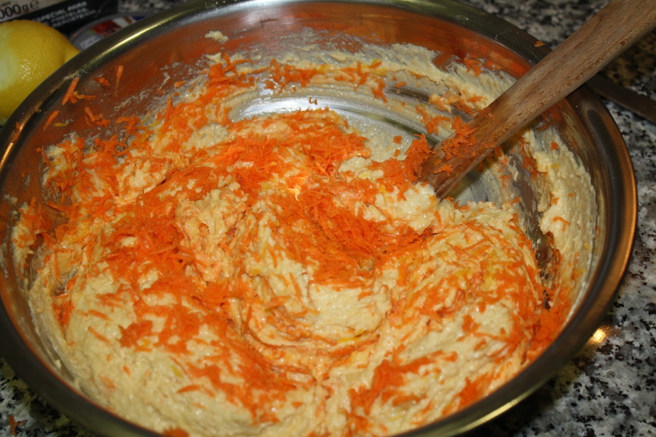Cuando tengamos las yemas bien mezcladas con el azúcar y la mantequilla, añadimos la levadura junto con la harina tamizadas (para evitar grumos) y mezclaremos bien. A continuación añadimos la calabaza rallada y una pizca de canela.